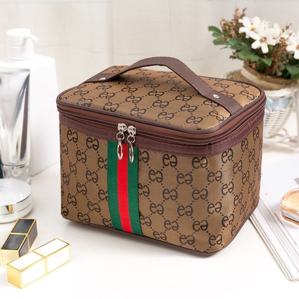 حقيبة تنظيم مستحضرات التجميل بني/ أحمر/ أخضر
